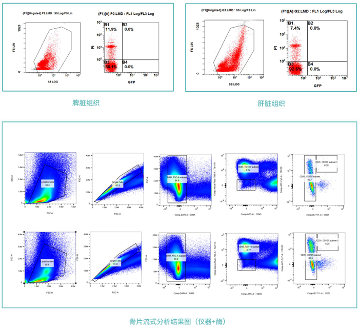 樣品通過雙向的機(jī)械切割與消化酶混合作用,通過恒溫消化,組織剪切,得到高濃度的活細(xì)胞懸液。后續(xù)經(jīng)過消化終止,過濾洗滌,必要時(shí)加以紅細(xì)胞裂解等步驟,可得到百萬到千萬級(jí)別的活細(xì)胞,不同的組織均可以達(dá)到90%以上的細(xì)胞得率。