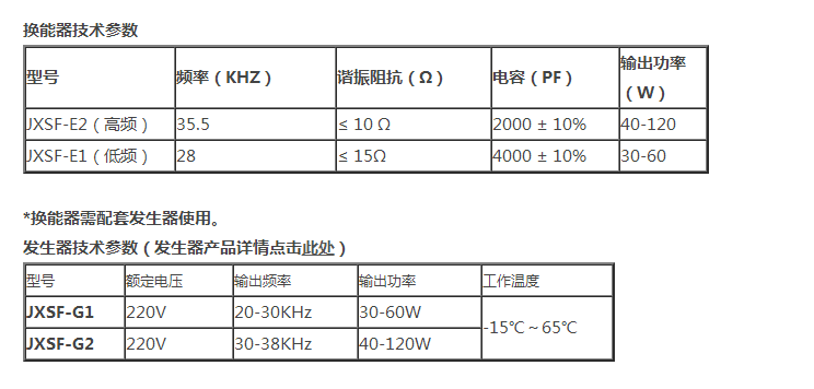 - 產(chǎn)品類型:超頻超聲波換能器JXSF-E系列
