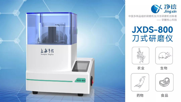 采用JXDS-800刀式研磨儀對樣品進行預處理, 可以進一步提高樣品的均一化程度, 更好地保留分析目標化合物, 為食品樣品中待測組分的提取、凈化、濃縮, 進行定量、定性分析檢測做好充分準備, 保證結果的準確性和重現(xiàn)性。