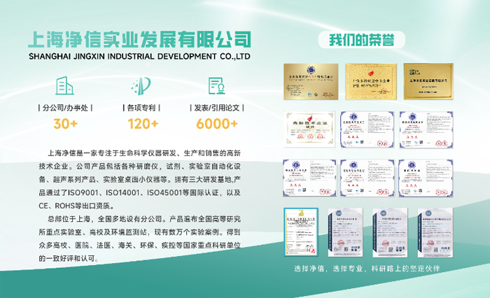 上海凈信是一家專業(yè)從事生命科學儀器、實驗室自動化設備的研發(fā)、生產、銷售為一體的國家高新技術企業(yè)。十幾年來凈信掌握自主核心技術,專注于研發(fā)、生產樣品前處理系統(tǒng)等生命科學儀器。