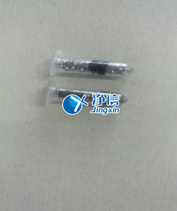 3.在耐磨離心管中先裝入X顆Xmm不銹鋼研磨珠,裝入X小塊剪切好的導(dǎo)電聚合物,再裝入X顆Xmm不銹鋼研磨珠,裝入XUL溶液,蓋好蓋子。