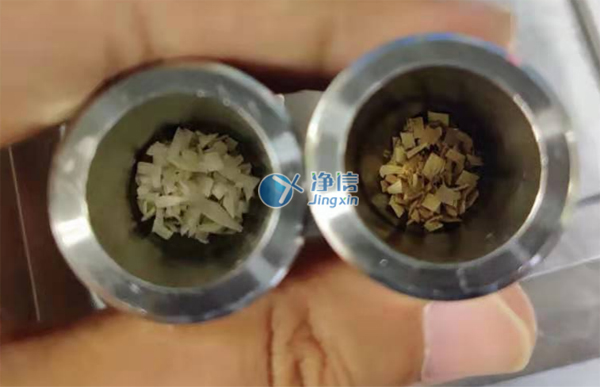 上圖為1分鐘的研磨效果,已經(jīng)完全研磨至粉末。效果非常好,蠶繭研磨一定要凍液氮,因?yàn)樾Q繭韌性極高,常溫研磨難度極高,之前老師了解過刀式研磨儀損耗也多,而且產(chǎn)熱容易變質(zhì),后續(xù)老師還會做到更多生物兼容性材料如滌綸、ps、pcl等等,凈信研磨儀都完全能勝任,經(jīng)過多次了解和對比所以老師們選用凈信研磨儀代替人工處理。效率高,效果好,完美解決了老師的研磨問題。